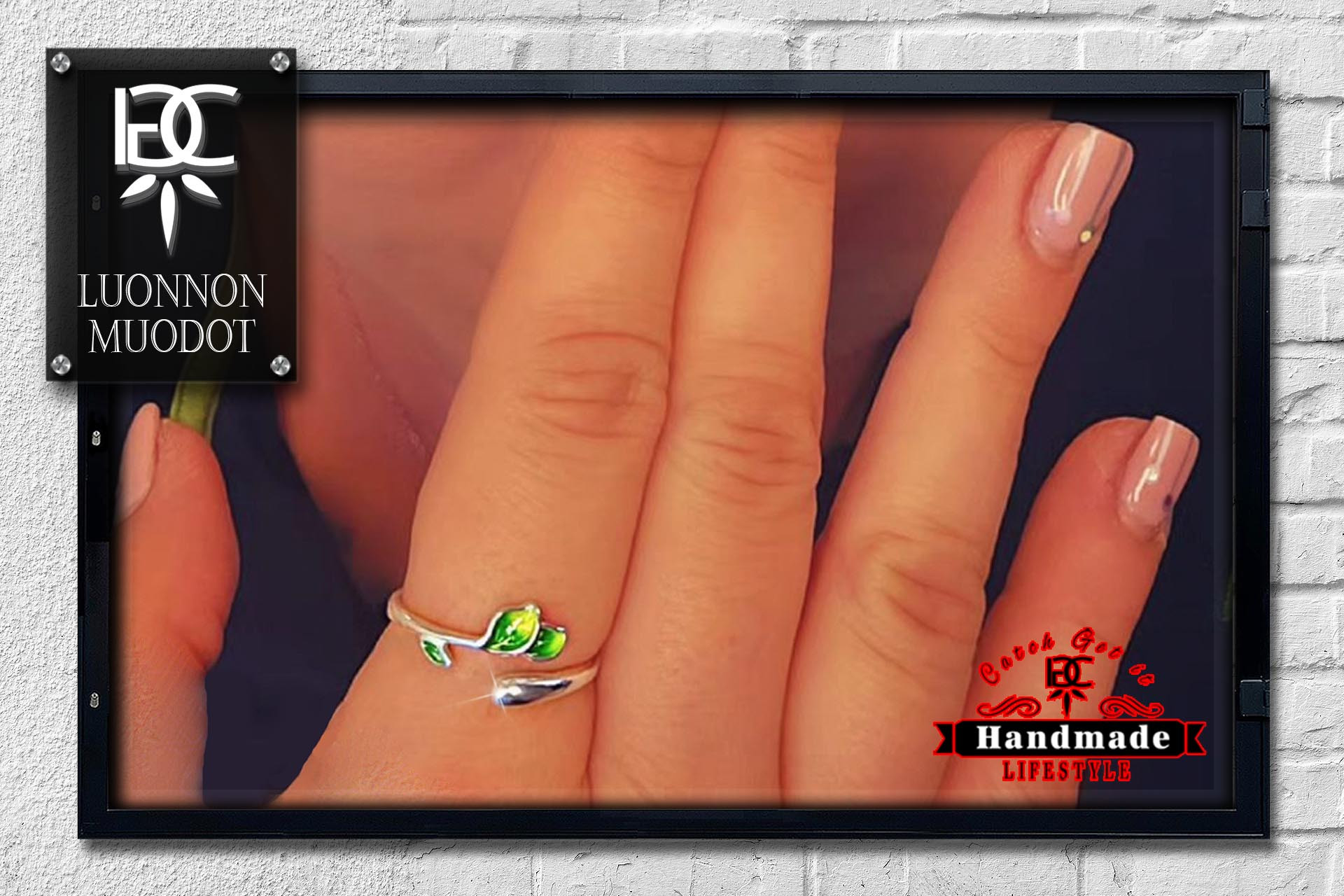 Das Luonnon Muodot (finnisch und bedeutet Formen der Natur) ein 925er Silber Ring mit gelb grüne Blätter emailliert. Edel gestaltet und durch sein offenes Design verstellbar. Dadurch lässt sich der Ring auf eine Ringgröße zwischen 52(16.5) bis 59(18.7) leicht verstellen (ausgeliefert für eine Ringgröße von 54(17.2) ) und ist damit schnell angelegt.