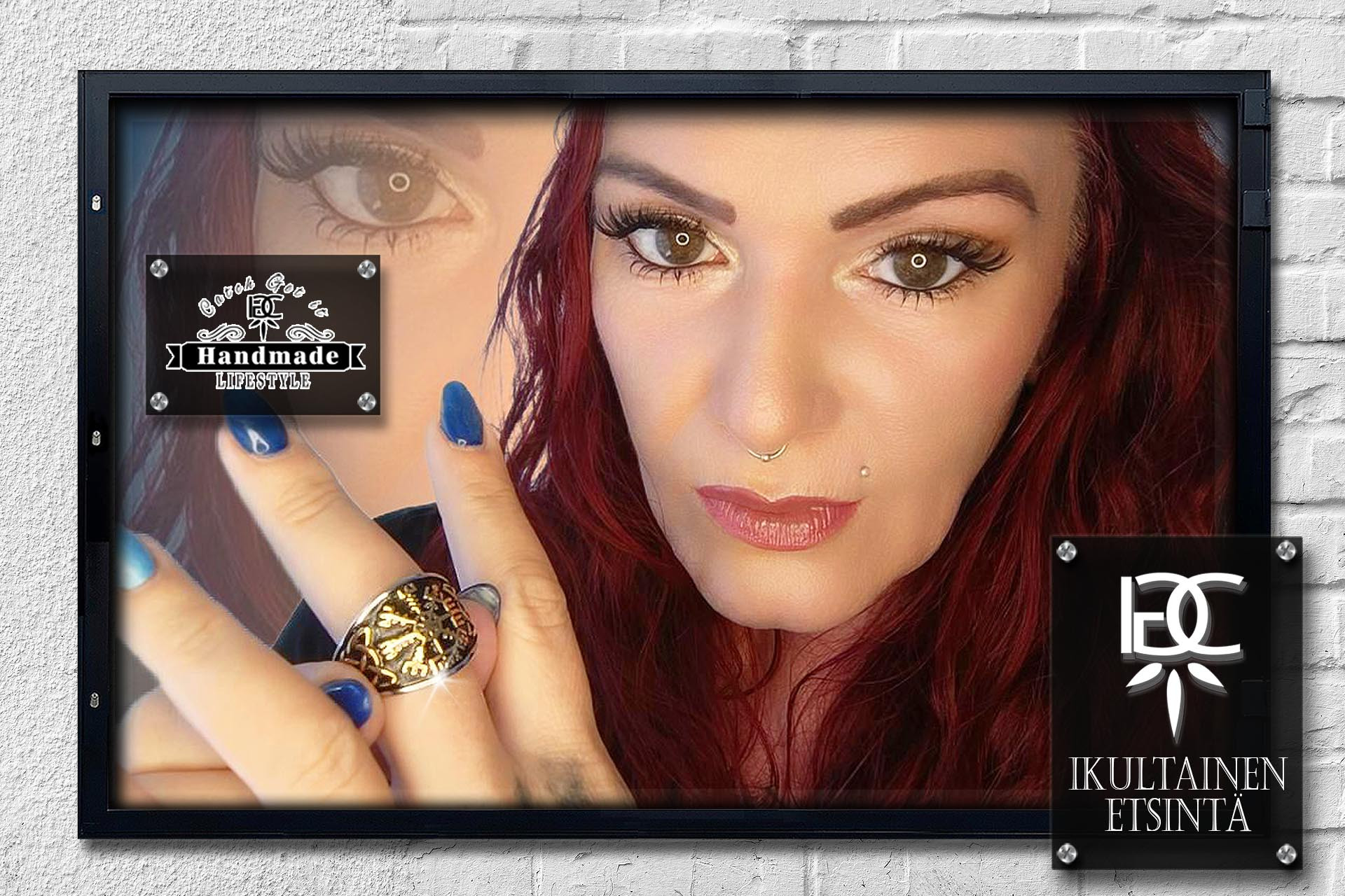 Das Kultainen Etsintä (Finnisch und bedeutet goldener Wegfinder) ein Edelstahlring in Form eines flachen Siegelrings mit einem nordischen Kompass Vegvisir sowie mit je Ring Flanke keltischen Knoten verziert, geschwärzt und vergoldet. Sehr ausgefallen und Detail getreu gestaltet. Der Ring ist in 7 Ringgröße zwischen 54(17,2) bis 66(22,3) erhältlich.