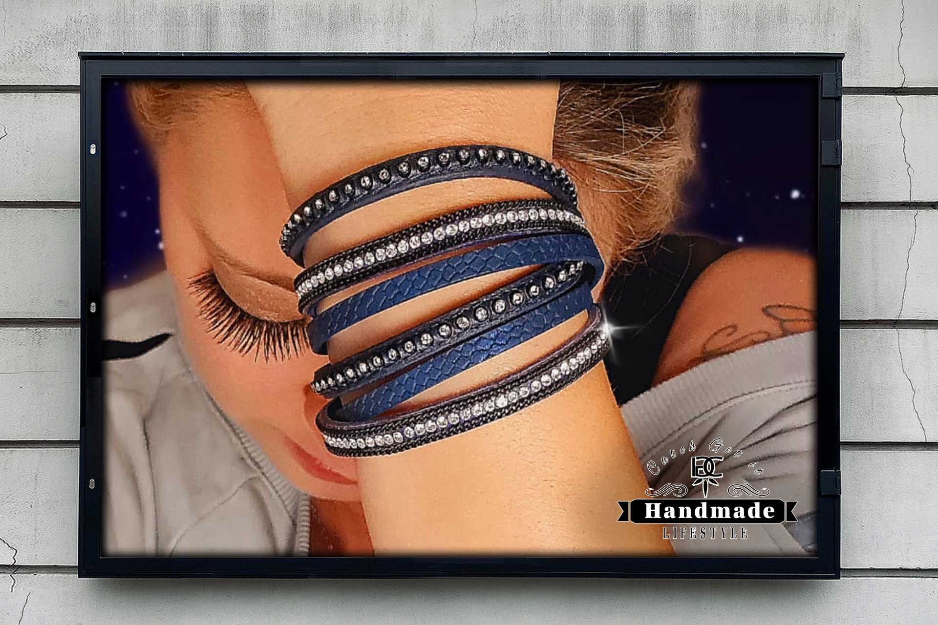 Das Blue Sparkle ein Wickelarmband Leder mit Strass in blau und Edelstahl in Kombination mit einem modernen Magnetverschluss aus Edelstahl 316L inspired by Bianca Tink. Zeitlos aber edel gestaltet und durch den praktischen Steckverschluss mit Magnet hält das Band fest am Handgelenk.