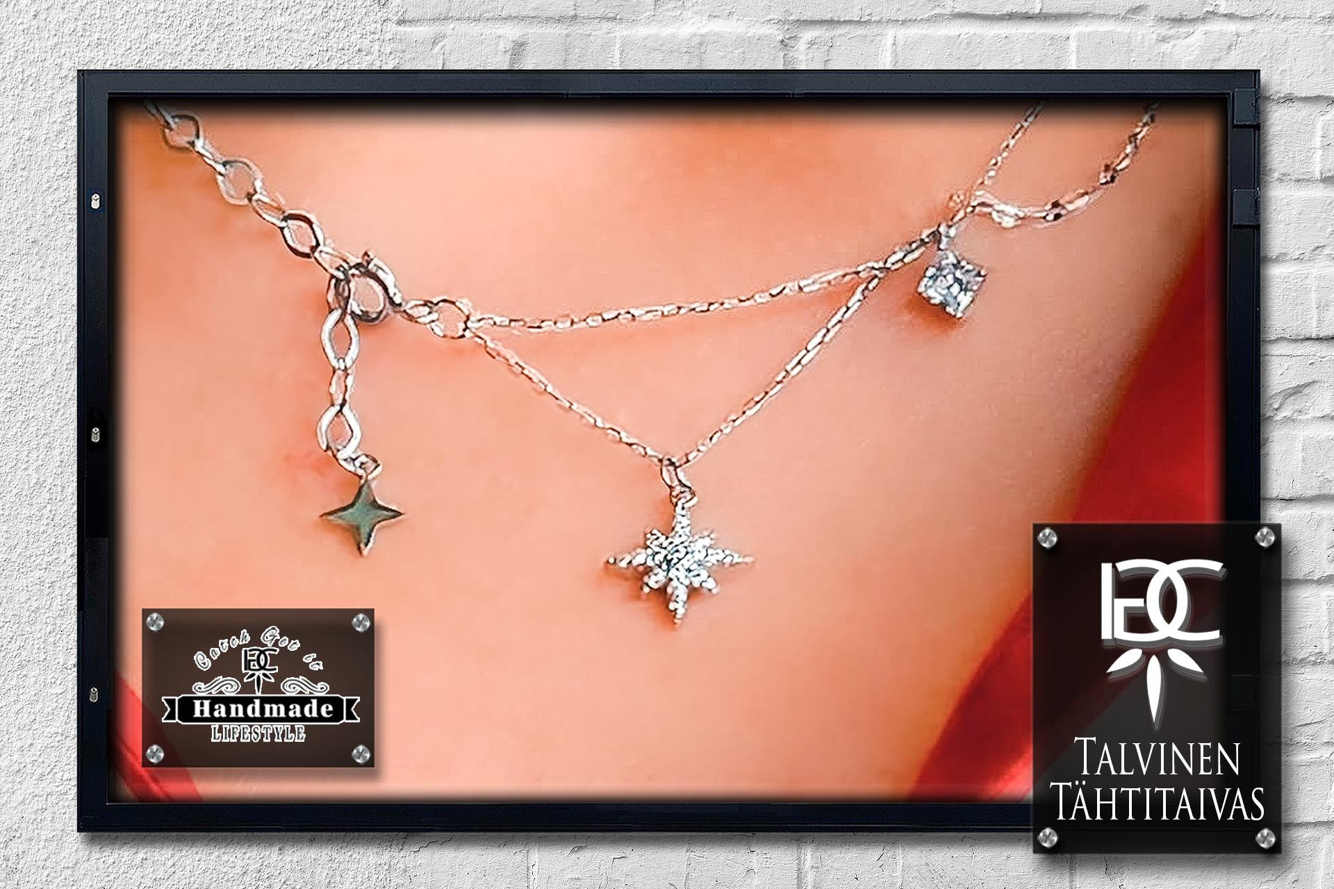 Das Talvinen Tähtitaivas (finnisch und bedeutet winterlicher Sternenhimmel) eine mehrteilige Halskette mit Sternen und Schneeflocke in 925er Silber mit weißen Zirkonia aufwendig verziert. Edel und spielerisch gestaltet mit einer Länge von 40 + 5 cm und durch den praktischen Federring Verschluss ist die Halskette schnell angelegt.