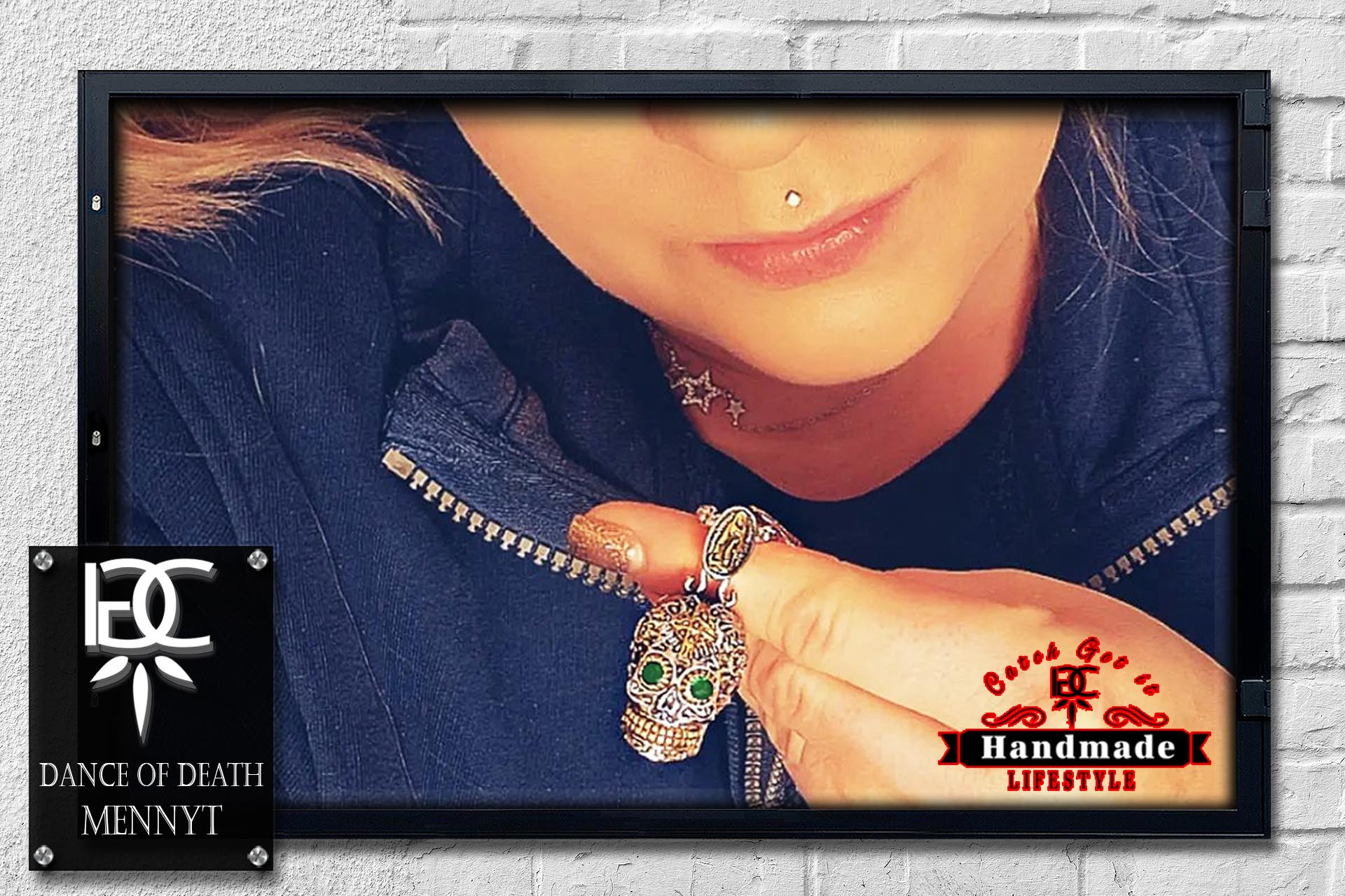 The Dance of Death Mennyt (Finnish and means past) is a stainless steel necklace with an elaborately decorated skull based on Santa Muerte with steampunk elements and green zirconia in the eye sockets. Very unusual and true to detail, with a length of 65 cm and the practical carabiner clasp, the necklace is quick to put on.